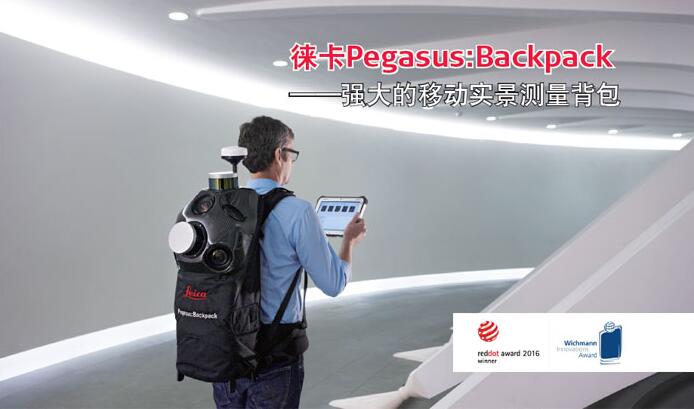 Pegasus Backpack 是徕卡测量系统发布的全新移动实景测量背包,是当前市场上集高性能、高精度、便携性于一体的高端移动测 量背包系统,赢得了 2016 年红点设计大奖、2015 年德国威克曼创新大奖。其配备 5 个相机和 2 个激光扫描仪,操作简单、佩 戴舒适、使用灵活,非常适用于 BIM 的获取和构建。